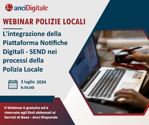 La Piattaforma Notifiche Digitali SEND di cui all’art. 26 del DL 76/2020 s.m.i. garantisce un servizio di notificazione, a valore legale, che consente alle Pubbliche Amministrazioni di notificare atti amministrativi a persone fisiche e giuridiche. SEND semplifica la gestione per la Pubblica Amministrazione mittente, che deve occuparsi del solo deposito in piattaforma dell’atto da notificare, e si occupa di processare la notifica scegliendo il miglior percorso di notificazione (sia esso digitale e/o analogico) tra quelli stabiliti dalla normativa. Il webinar si prefigge di approfondire le caratteristiche della Piattaforma e le relative modalità di adesione, di dare evidenza delle opportunità legate all’Avviso Misura 1.4.5 (Missione 1 Componente 1 del PNRR), di fare un focus sugli impatti che l’utilizzo della Piattaforma può generare nell’operatività della Polizia locale in termini di semplificazione e razionalizzazione dei processi.