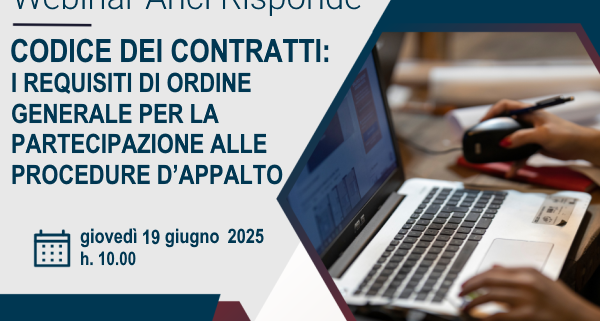 Giovedì 19 giugno 2025 Anci Digitale propone un secondo webinar gratuito, riservato agli Enti abbonati ai Servizi di Base – Anci Risponde dedicato ad approfondimenti in materia di Codice dei contratti pubblici