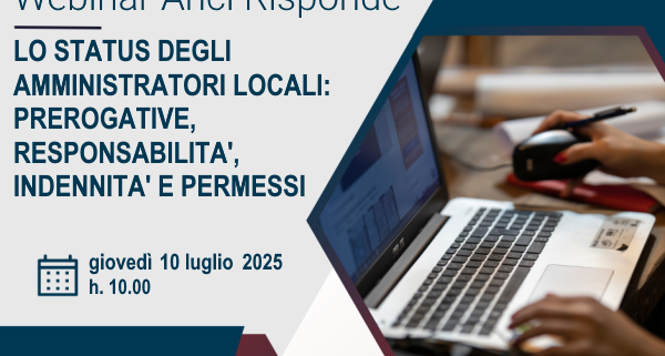 Giovedì 10 luglio 2025 Anci Digitale propone un terzo webinar gratuito, riservato agli Enti abbonati ai Servizi di Base – Anci Risponde dedicato ad approfondimenti in materia status degli amministratori locali
