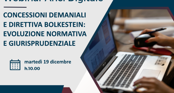 Martedì 19 dicembre 2023 Anci Digitale propone un webinar gratuito, riservato agli Enti abbonati ai Servizi di Base – Anci Risponde sul tema delle concessioni demaniali e dell’evoluzione normativa e giurisprudenziale conseguente ai numerosi interventi di carattere legislativo e alle sentenze intervenute dopo l’adozione della direttiva Bolkestein.