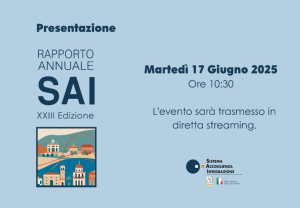 Martedì 17 giugno a partire dalle ore 10.30 si terrà, in diretta streaming, la presentazione del “Rapporto Annuale SAI XXIII edizione”. I saluti introduttivi sono affidati al Presidente dell’ANCI, Gaetano Manfredi, sindaco di Napoli e al segretario generale Anci, Veronica Nicotra seguirà la presentazione del Rapporto a cura di Virginia Costa, responsabile del Servizio centrale SAI e gli interventi del prefetto Rosanna Rabuano, capo dipartimento per le Libertà civili e l’Immigrazione del ministero dell’Interno e del delegato ANCI all’Immigrazione e Politiche per l’integrazione, Gianguido D’Alberto, Sindaco di Teramo.