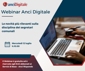 La partecipazione al webinar è gratuita e riservata esclusivamente agli Enti abbonati ai Servizi di Base – Anci Risponde di Anci Digitale.
